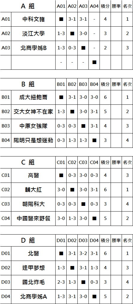 20190428 第14屆大專校友杯團體賽 比賽成績